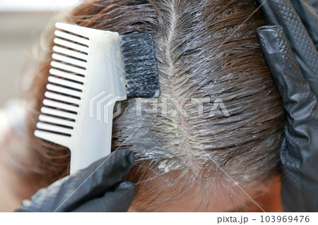 一個女人用刷子染白髮