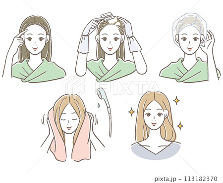 一組染白髮或染髮的女性美容插畫