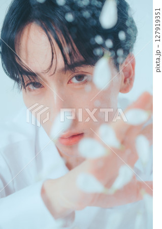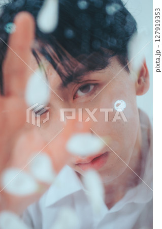 韓國美女倦怠感十足,以水滴和花瓣裝飾