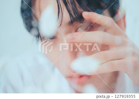 透過磨砂玻璃的倦怠韓式美女肖像