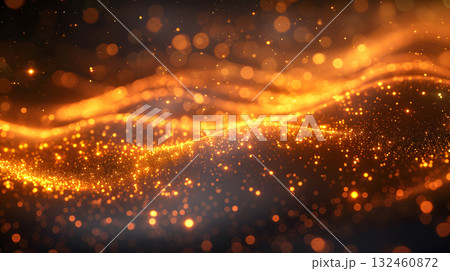 Glistening golden fabric with shimmering bokeh lights creates luxurious feel