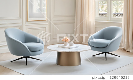 Modern Blue Chairs with Round Table in Elegant Living Room Interior Design