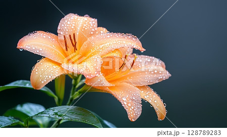 Beautiful Orange Lily Flower with Water Drops on Petals in Soft Focused Background