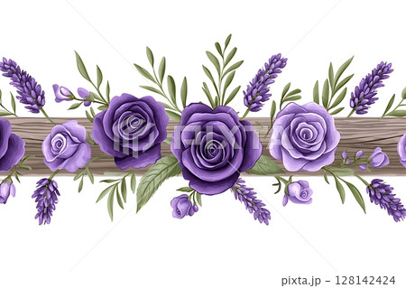 Delicate Purple Flower Illustration Next to Wooden Candle Stand and Tiny Blooms