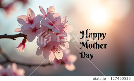 A gentle mother's day greeting with cherry blossom and a warm, glowing background