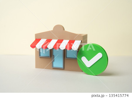 Business and the green checkmark of approval. Work permit. License and verification. Opening new stores. Legal compliance concept, authorized operations and confidence for partners and customers