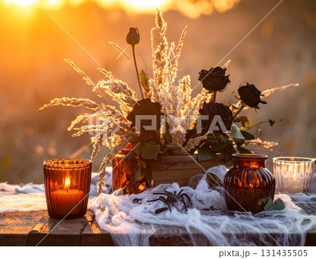 秋季餐桌裝飾有南瓜、鮮花和秋葉