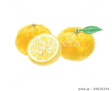 用水彩畫的柚子插圖