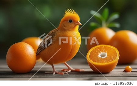 Orange chicks, surrounded by oranges