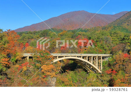 從Naruko Gorge Taisuzawa Bridge(宮城縣)的秋葉/長廊