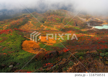 宮城縣、秋田縣、岩手縣的栗駒山和昭和湖的紅葉(2015年)