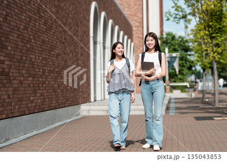 女大學生在校園裡聊天