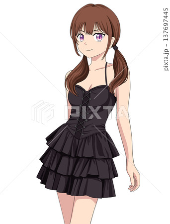 動漫風格害羞高中女生/學生全身插畫 - 臉部表情差異圖集
