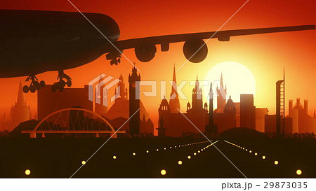 Glasgow Airplane Landing Skyline Golden Background