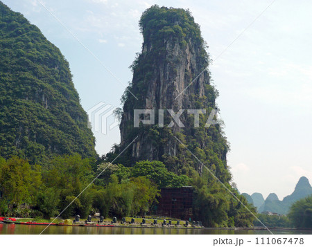 在中國桂林坐船到陽朔拍攝兩岸美麗的山景