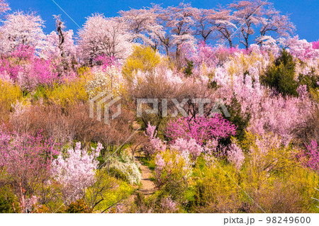 【早春素材】阿智村的桃子和藍天【長野縣】