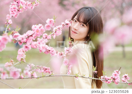 Furukawa Kokata公園開花的花桃子森林和強姦開花