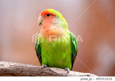 Nyasa lovebird or lilians lovebird, exotic parrot bird, perched on a tree branch.