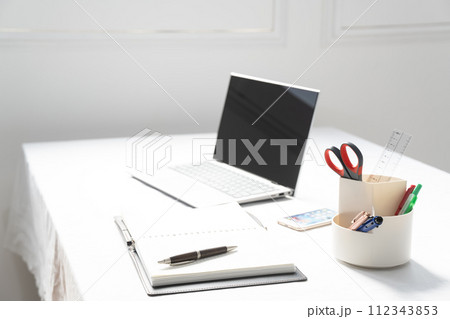 白色桌子和室內的筆記型電腦