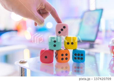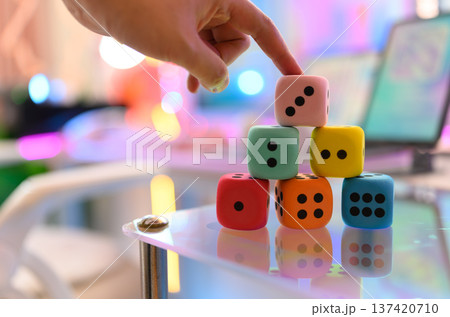 彩色骰子和燈光