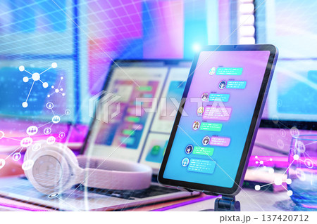 在平板電腦上聊天