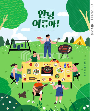 summer holidays vacation Web Banner illustration. Korean Translation "Hello summer!"