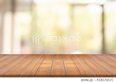 Empty wood table on blurred background