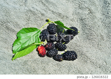 像櫻桃一樣長在一起的黑色和紅色桑樹