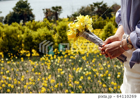 京畿道九里市漢江市民公園油菜田裡的深情夫妻