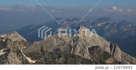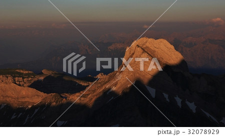 Peak of Mount Altmann at sunset. View from Mount Saentis, Switzerland.
