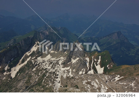 View from Mount Saentis, Appenzell Canton. Summer scene in Switzerland.