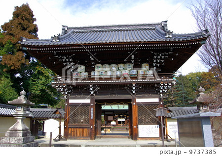 京都梅宮大社:盛開的梅花和樓門(隨神門)