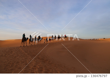 Camel caravan in Sahara desert Merzouga, Morocco