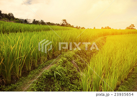 The beautiful scenery of the green terraced rice field of Bong Piang forest village.