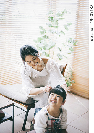 Change hairdo. Hair care at home. Helping with hairstyle.