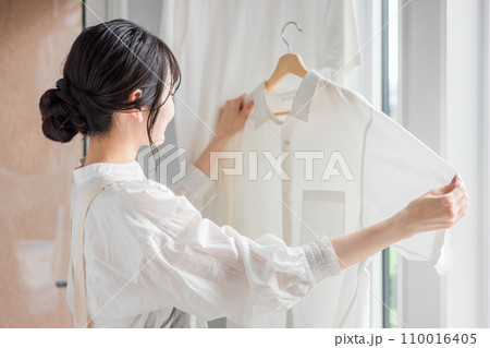 烘乾衣物的婦女(家事、家庭主婦、清潔劑、織品軟化劑、漂白水)