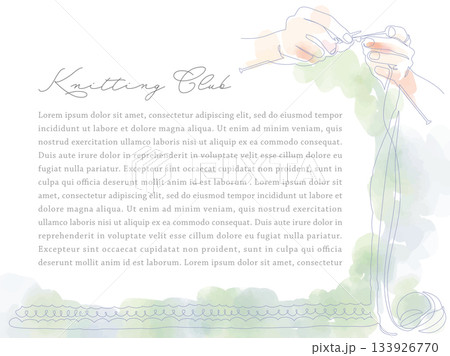 這是一幅用一筆畫出的雙手拿著織針編織的插圖。它的尺寸為4:3,可用於PowerPoint簡報。