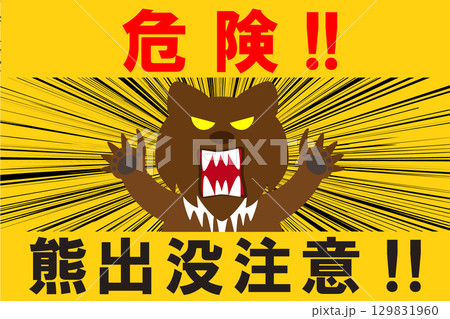 「謹防熊出沒」海報設計,帶有真實的熊觸感、集中線和危險膠帶