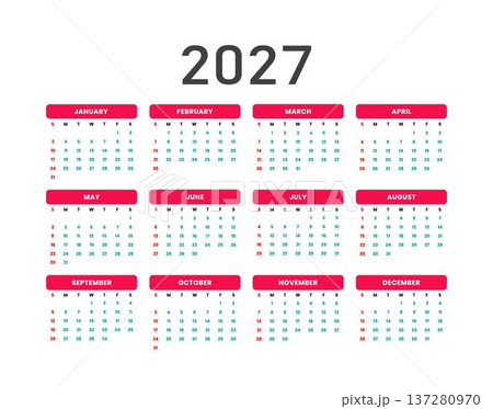 Monthly calendar template for 2026 and 2027 year. Desk calendar 2026 and 2027 design, simple and clean design, Wall calendar for print, digital calendar, Corporate design planner template vector.