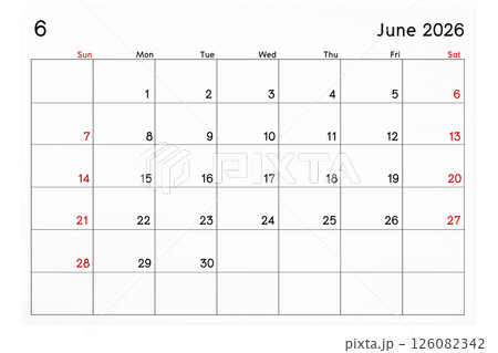 Annual calendar template for the year 2026 in simple minimalist style, twelve months, week starts on Sunday, vector printable page horizontal landscape orientation