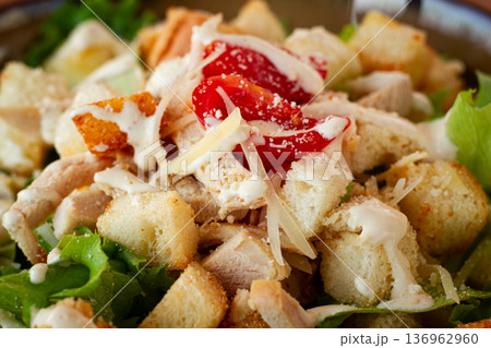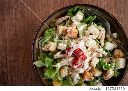 classic Caesar salad, close-up, natural light, selective focus, horizontal,