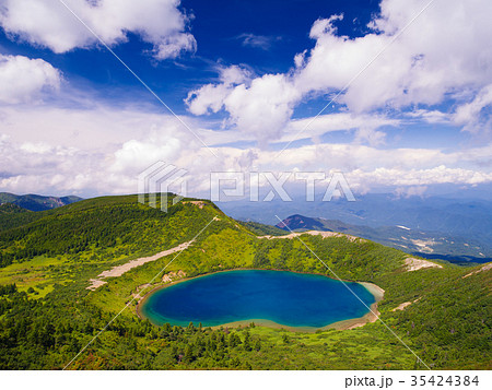 初夏的摩週湖倒映著天空。日本北海道弟子屈町。六月下旬。
