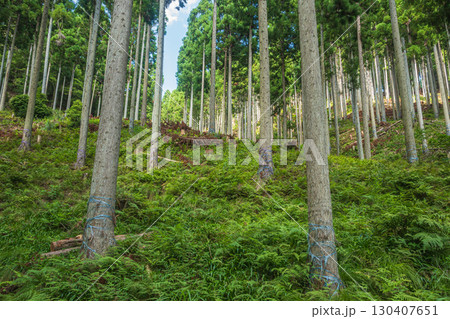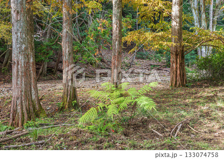 滋賀縣長濱市針葉林地上生長的蕨類植物
