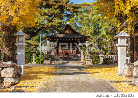 京都市伏見區淀城遺址公園、稻羽神社的深秋景色