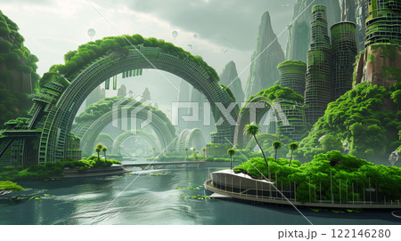 Eco futuristic green earth city.