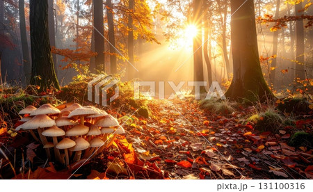 AI 圖片:長滿蘑菇的秋季森林