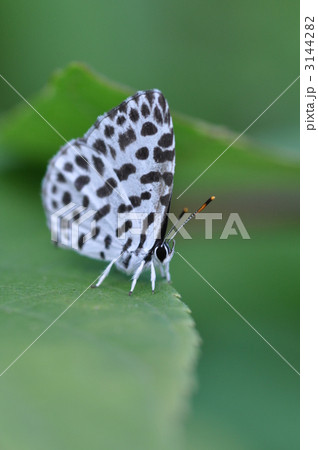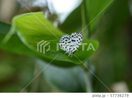 下雨天。 Shizimi蝴蝶停在花園的葉子上。