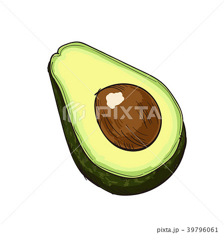 酪梨切成兩半的水彩漫畫