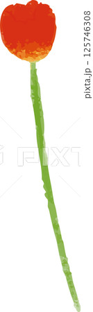 一株紅色鬱金香的手繪插圖