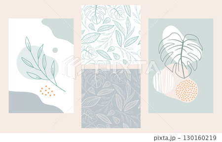 Set of nature abstract posters and seamless patterns vector